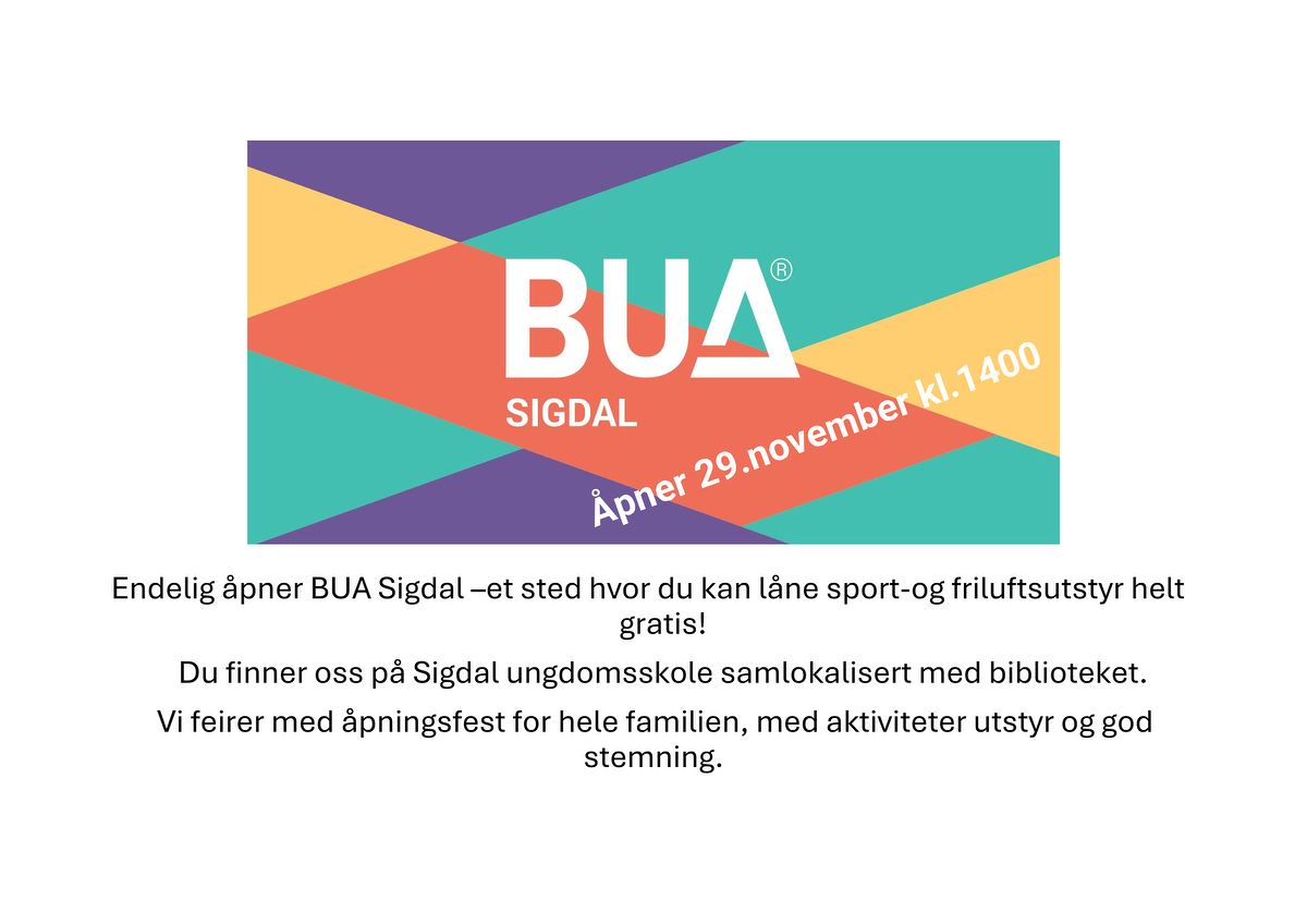 Velkommen til et hyggelig åpnings-arrangement av BUA Sigdal.